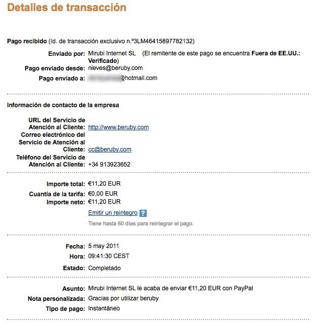Pues bien, después de lanzarme a usarlo para probar que tal iba, ahora puedo confirmar que son totalmente fiables, ya que he recibido el primer pago, y os mostraré a continuación el comprobante de pago de beruby: